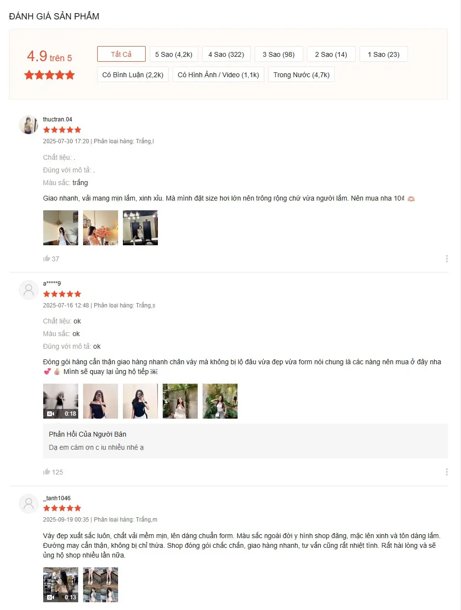 ✔ XL : Eo < 78, Mông <98, Cân năng 54-57kg, Độ dài váy 29cm