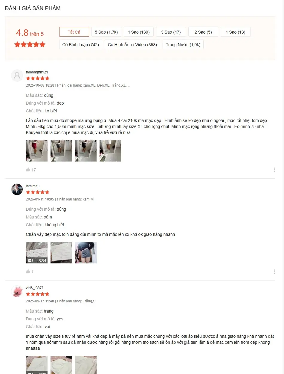 ✔ XL : Eo < 78, Mông <98, Cân năng 54-57kg, Độ dài váy 29cm