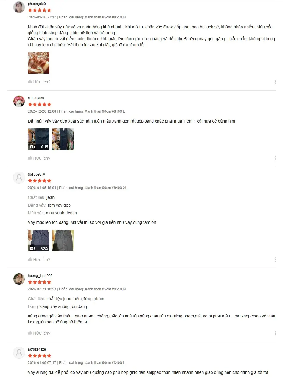 - Chất liệu: Jean denim mềm mại nhưng đứng form, đặc biệt không co giãn giúp giữ nguyên dáng váy đẹp sau thời gian dài sử dụng.