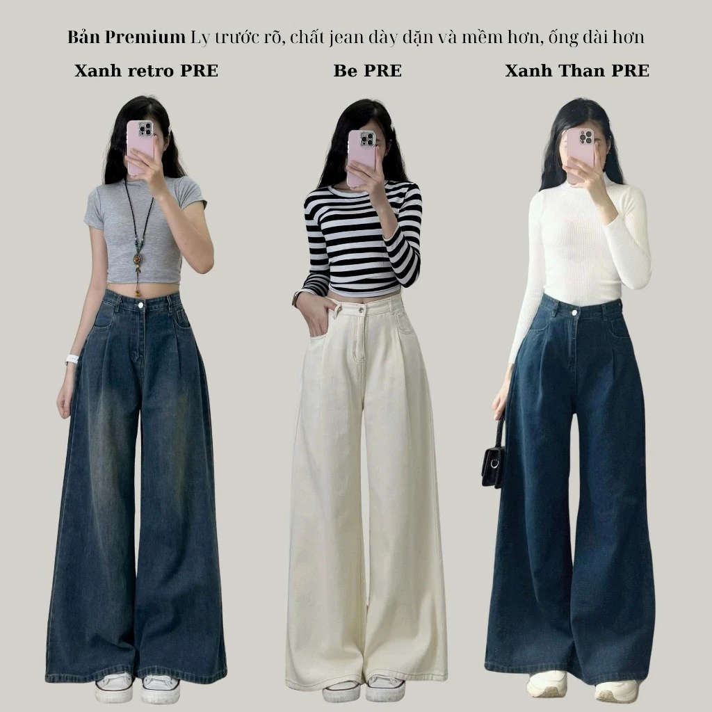 *Quần bò jean ống xuông ống rộng đủ màu